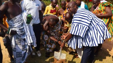 Bosome Freho MP cuts sod for construction of an Astroturf at Asiwa