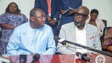 Dr Amin Antar, Finance Minister addressing the media. Seated close to him is Professor Otchere Addai Mensah, KATH CEO Dr…