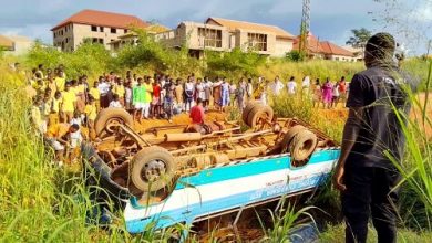 Photos: 30 pupils injured after school bus somersaults, falls into river at Atwima-Kwanwoma