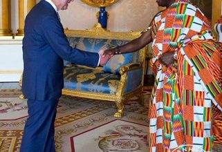 King Charles III on the left shakes hands with Otumfuo Osei Tutu III on the right An iconic moment was…