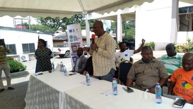 Kumasi Mayor, Hon Samuel Pyne addressing the durbar by HORESD project Committee members with waste pickers at the precincts of…