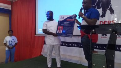 Lawyer Justin Frimpong Kodua, YEA CEO presenting a citation to one of the advisors of the Crusaders group in Kumasi…
